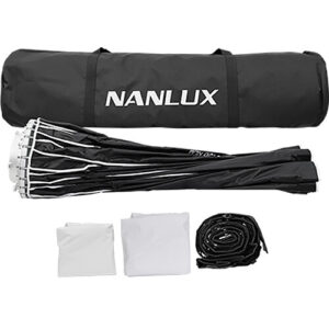 El modificador cuenta con un interior plateado para maximizar la salida de luz, y difusores frontales e interiores extraíbles que ofrecen opciones de contraste. Una rejilla estrecha el ángulo del haz, elimina la luz dispersa y facilita la iluminación selectiva. Nanlux incluye una generosa bolsa de transporte para guardarlo y fotografiar en exteriores.