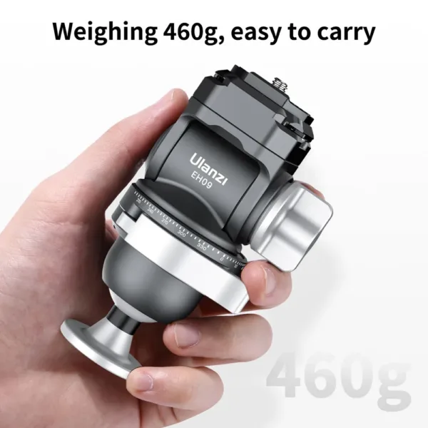 El cabezal de bola invertido Ulanzi EH09, compatible con el sistema Arca-Swiss, ha sido diseñado con precisión para ofrecer transiciones suaves y sin esfuerzo entre tomas horizontales y verticales.